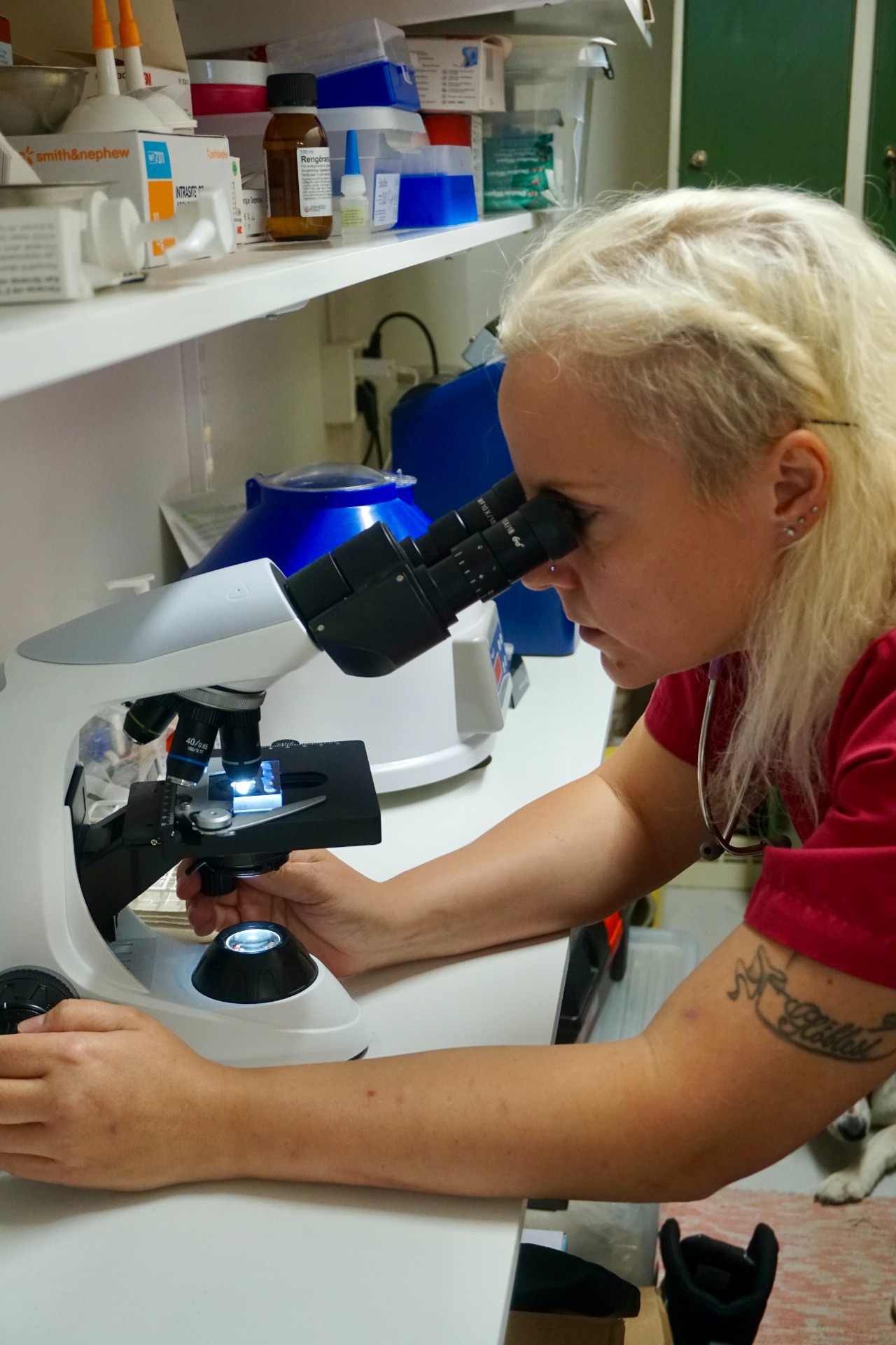 Jag utför munhåleundersökningar på alla djurslag och hjälper till att upptäcka problem i tid. På smådjur kan jag ta bort mindre mängder tandsten och ge råd kring fortsatt tandvård. Vid behov av större åtgärder, till exempel vid munhåleinflammation, hänvisar jag vidare till klinik för bästa möjliga behandling.
